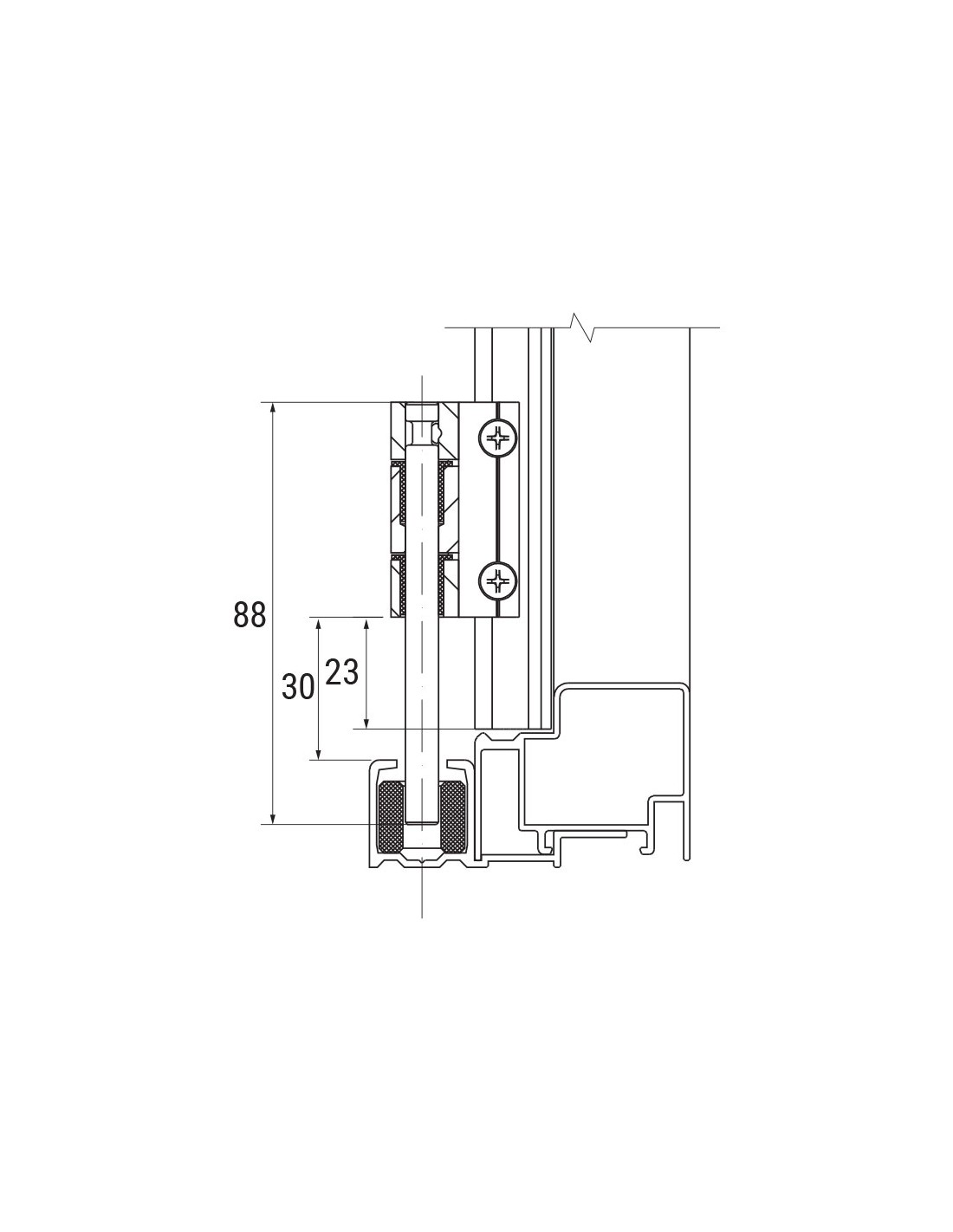 Bottom hinge with carriage for blind shutters in aluminium - L = 45 mm.