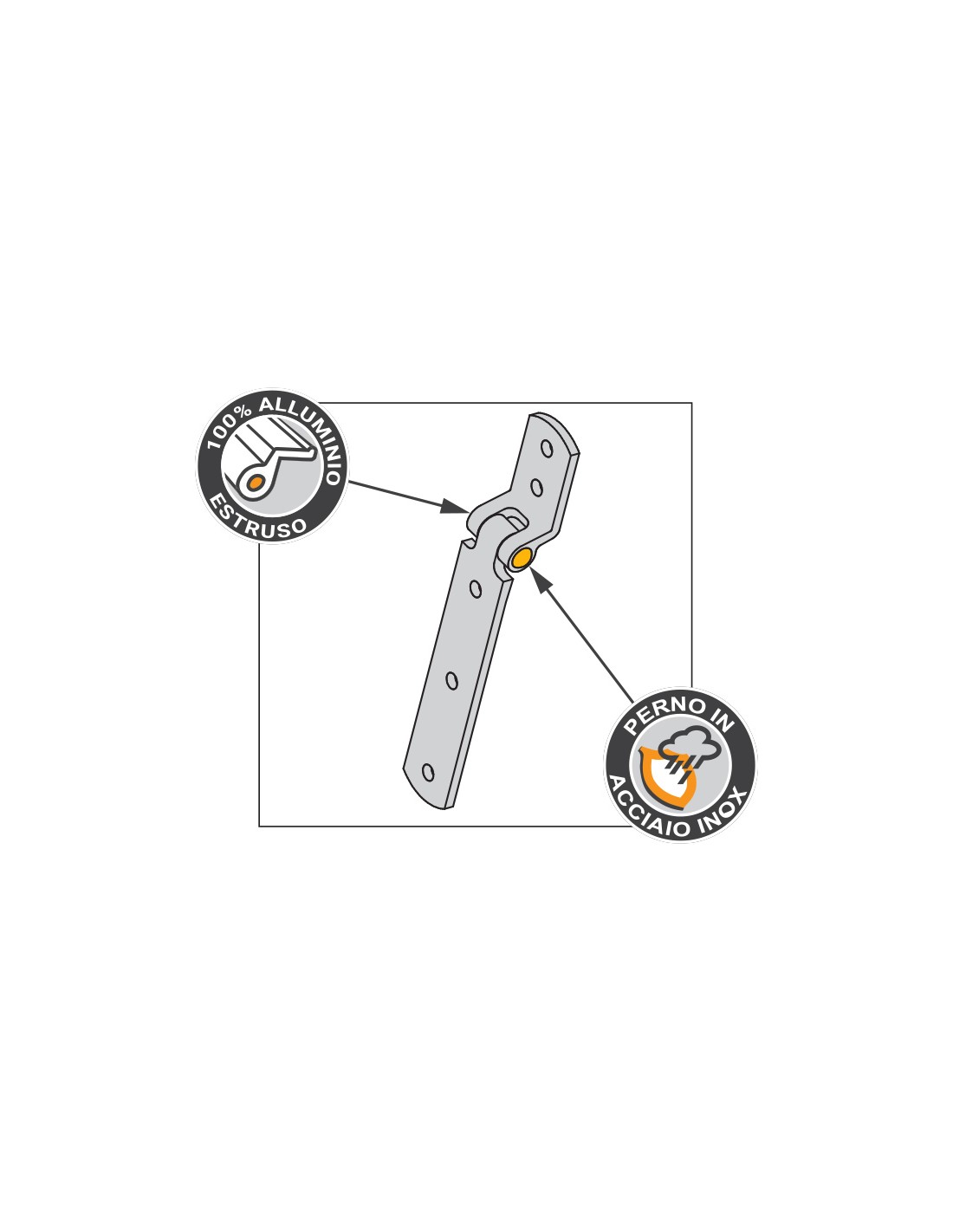 Hinge for genovese style opening hatches in aluminium with stainless steel pin - 14 mm overlap.