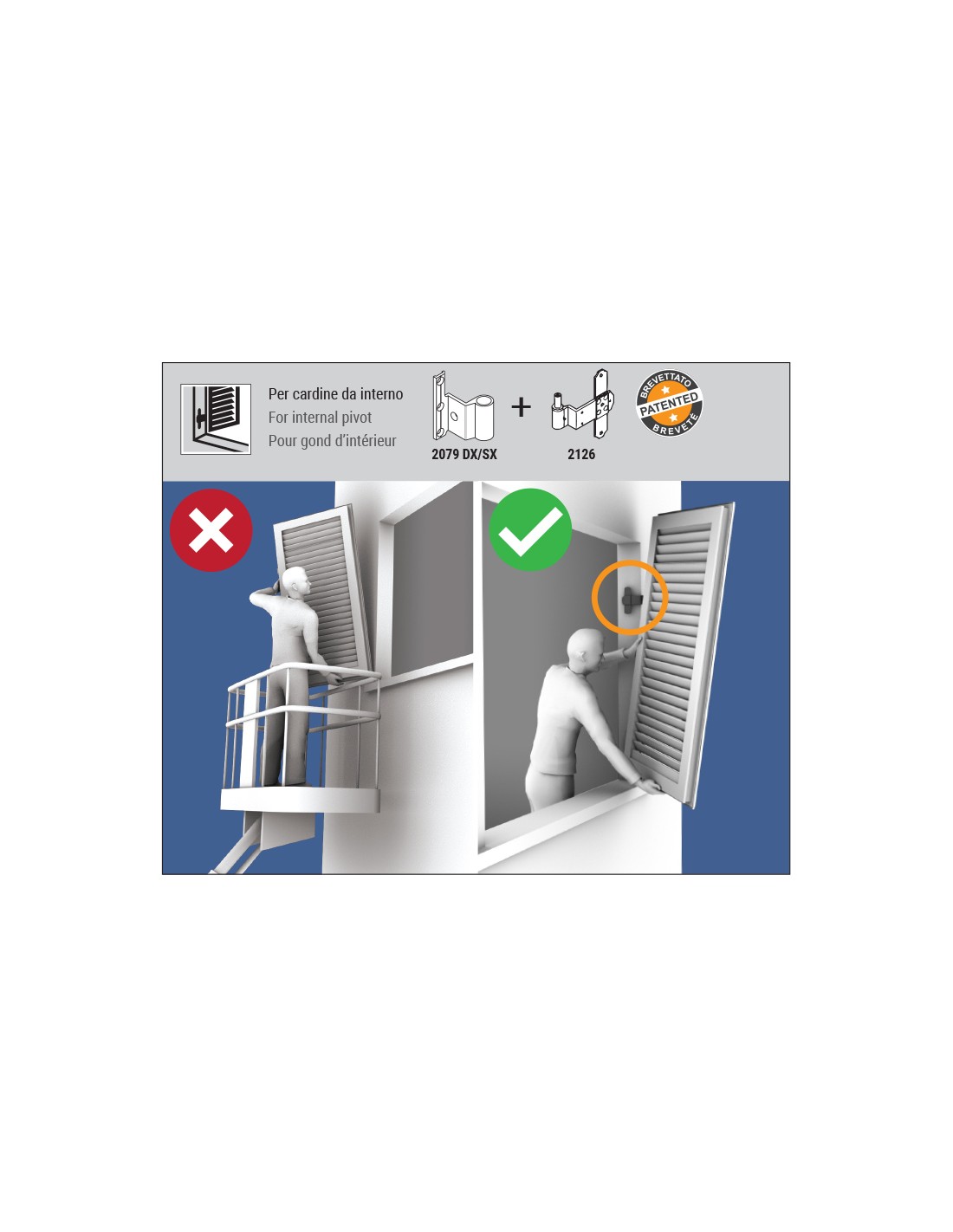 Hidden flap hinge right side in aluminium for 2126 pivot - H2S System - A = 17 - C = 26
