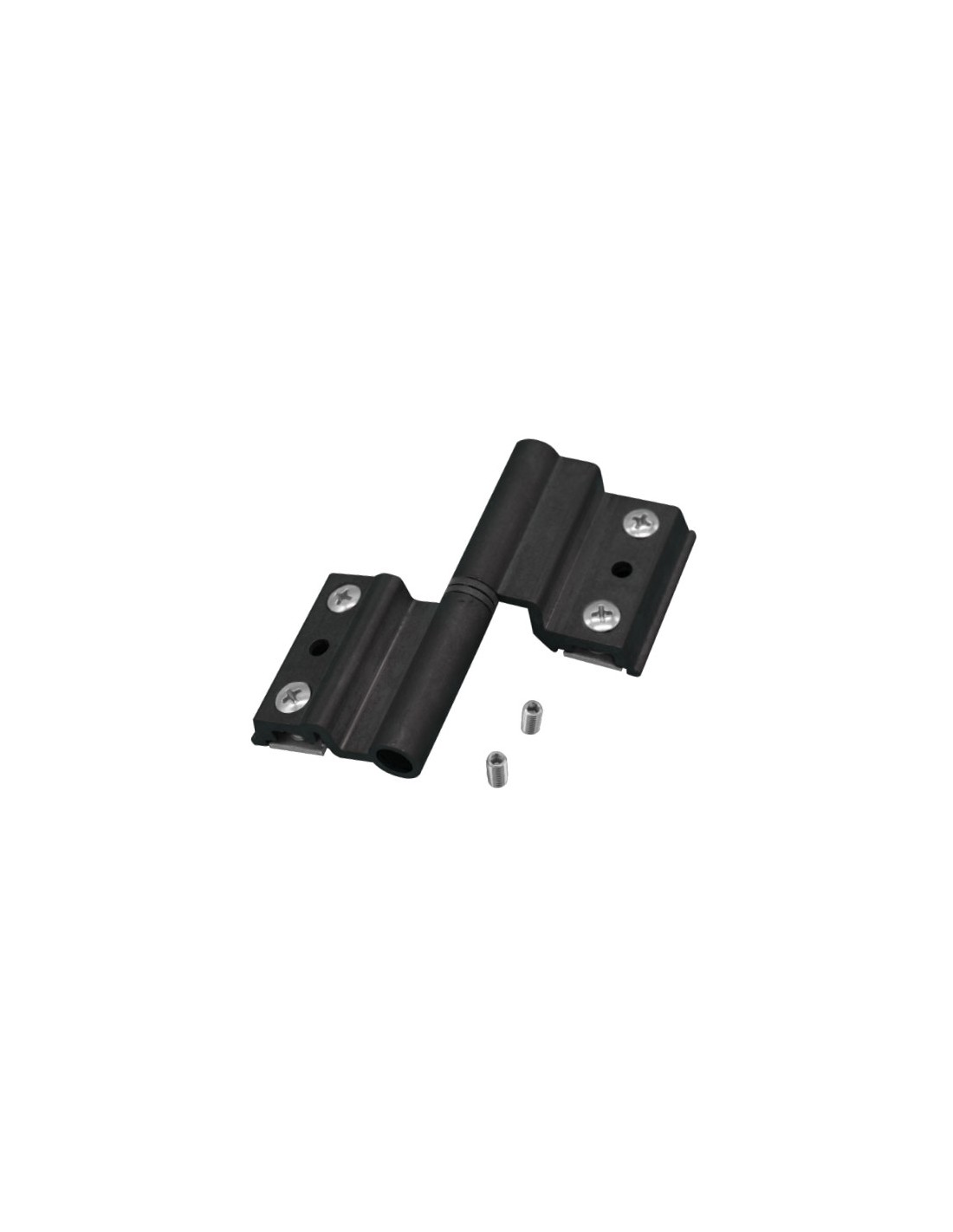 Hinge for framed shutters with threader plate and a 3rd hole for self drilling screw.