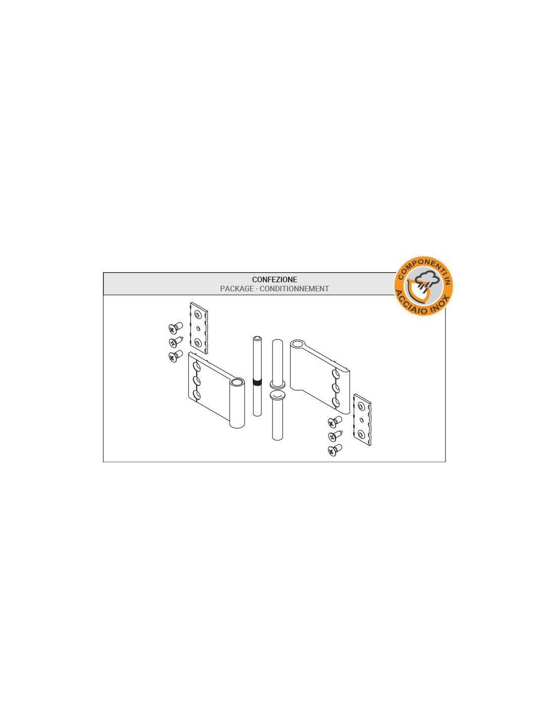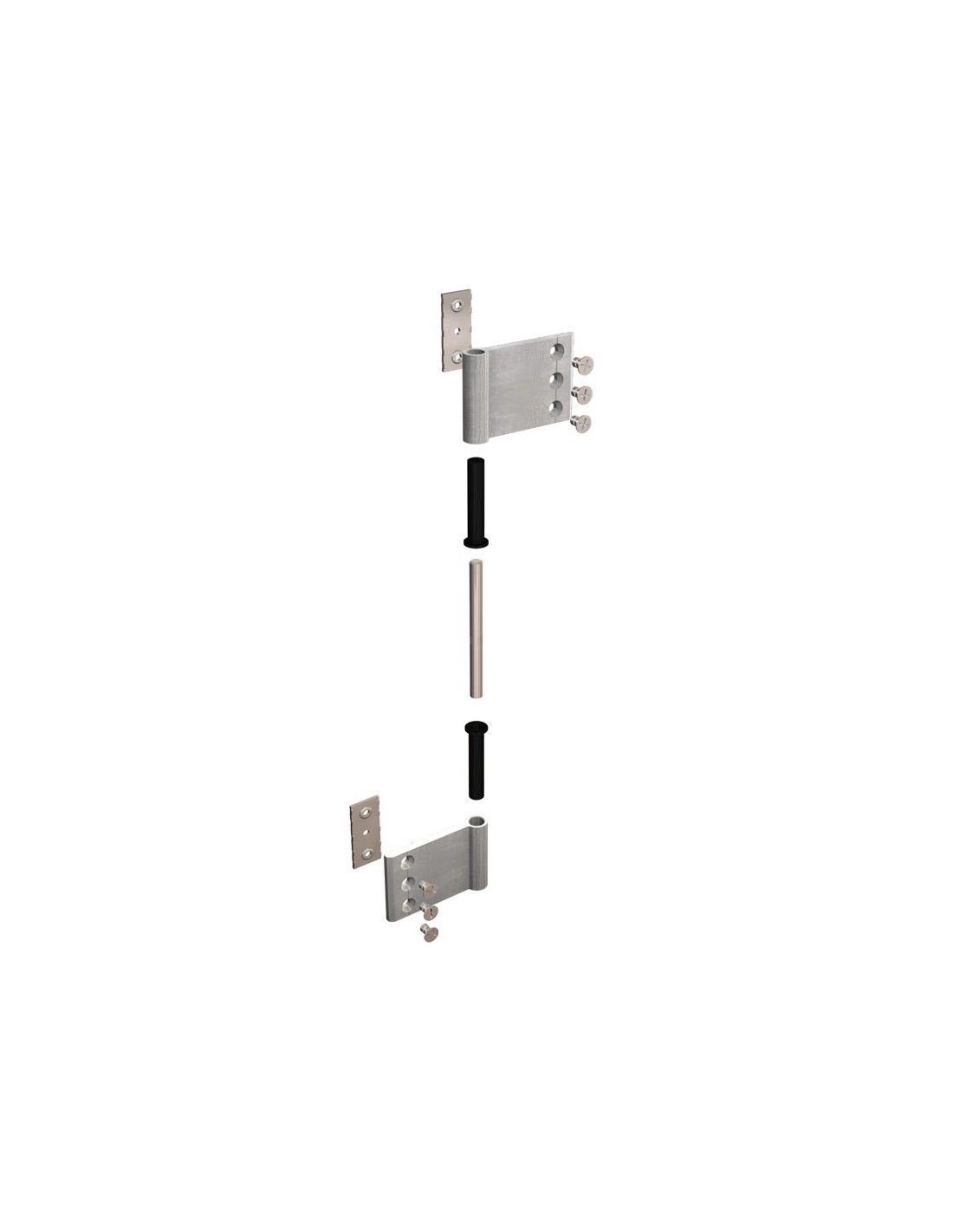 Two wings hinge in extruded aluminium, with stainless steel components - Long offset.