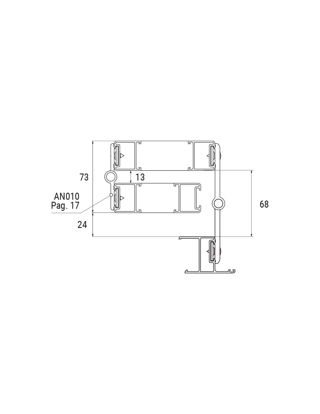 Two wings hinge in extruded aluminium, with stainless steel components - Long offset.