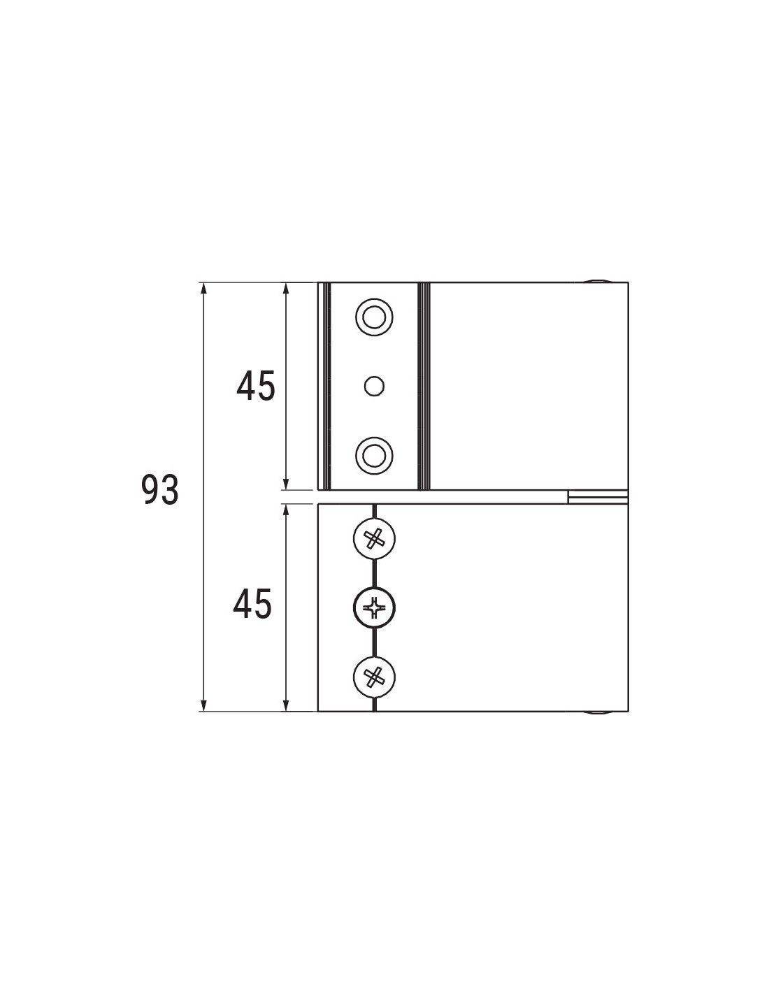 Two wings hinge in extruded aluminium, with stainless steel components - Long offset.
