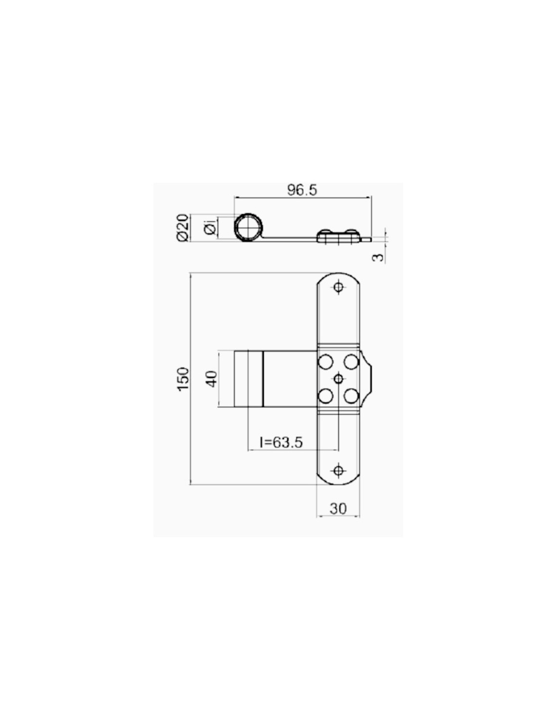 T-shaped hinge in aluminium - Series 20 - I = 63,5 mm - Offset = 10 mm - Coplanar.