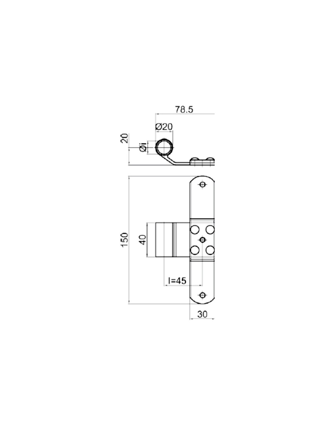 T-shaped hinge in aluminium - Series 20 - I = 45 mm - Offset = 20 mm.