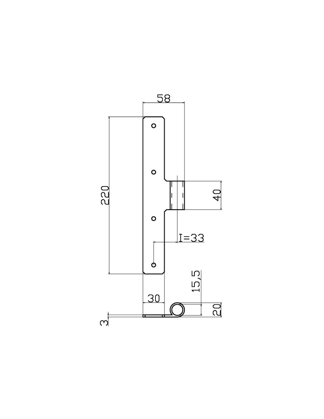 Middle shutter hinge - Serie 40 - I = 33 mm - Offset = 10 mm - Coplanar.