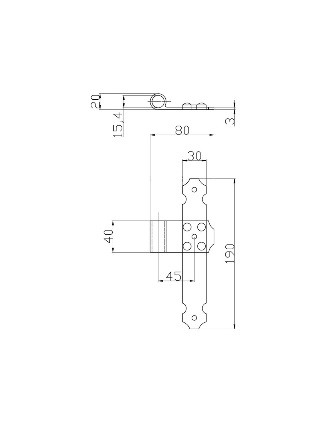 Middle shutter hinge right side - Series 70 - I = 45 mm - Coplanar.