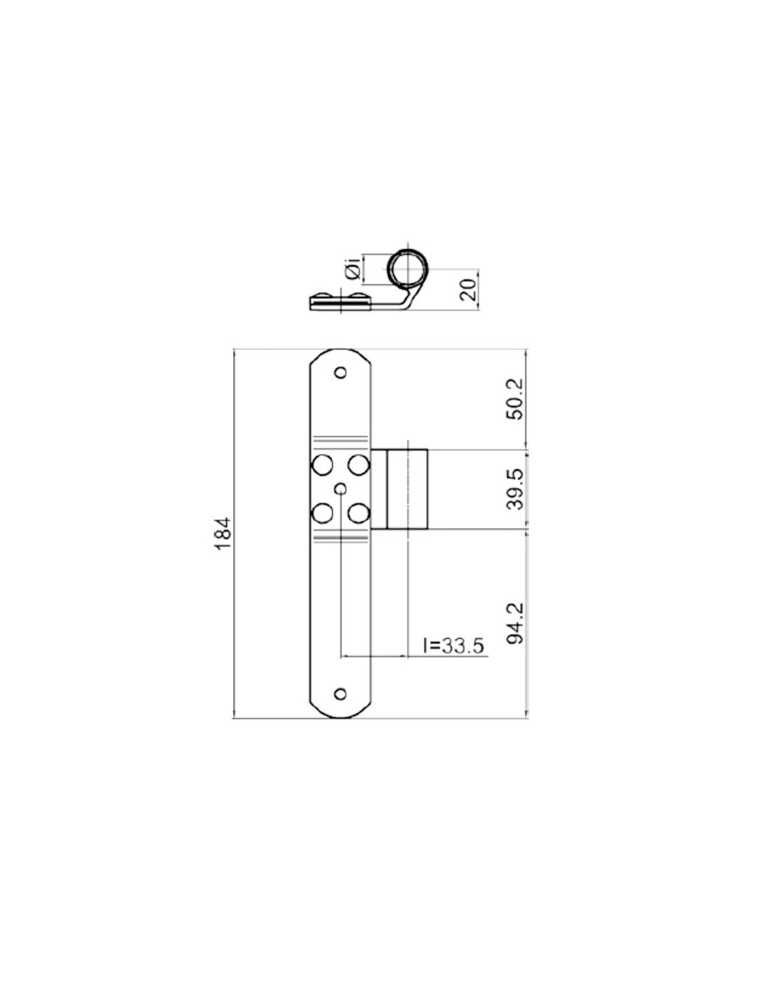 Middle shutter hinge right side - Series 70 - I = 33,5 mm - Offset = 20 mm.