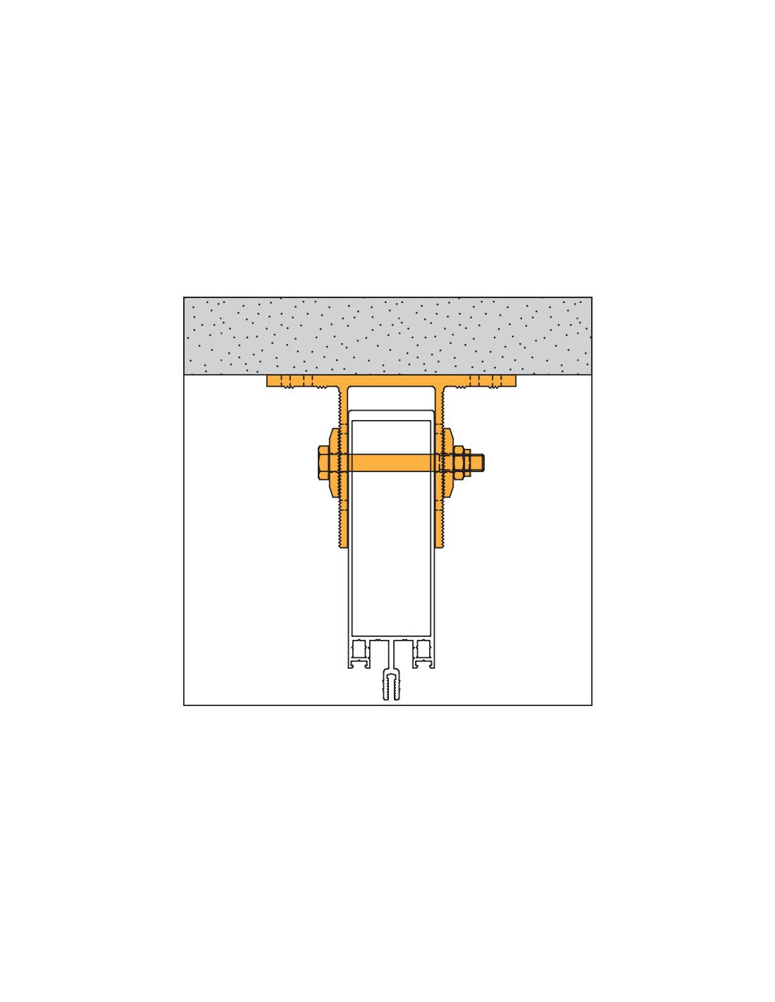 Extruded aluminium center bracket for façades, with 4 washers, 2 M10 screws in white galvanized steel and 1 nut