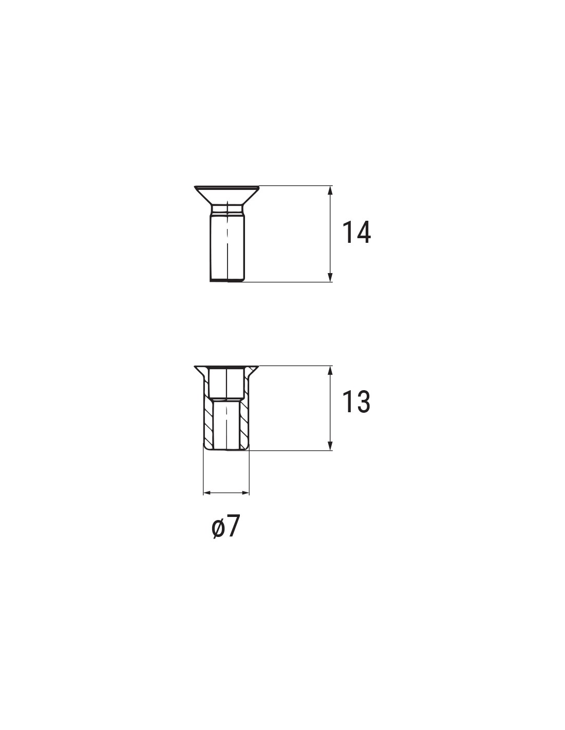 Kit pour fixation, avec 20 inserts en aluminium déformable M5 et 20 vis M5 x 14 inox.
