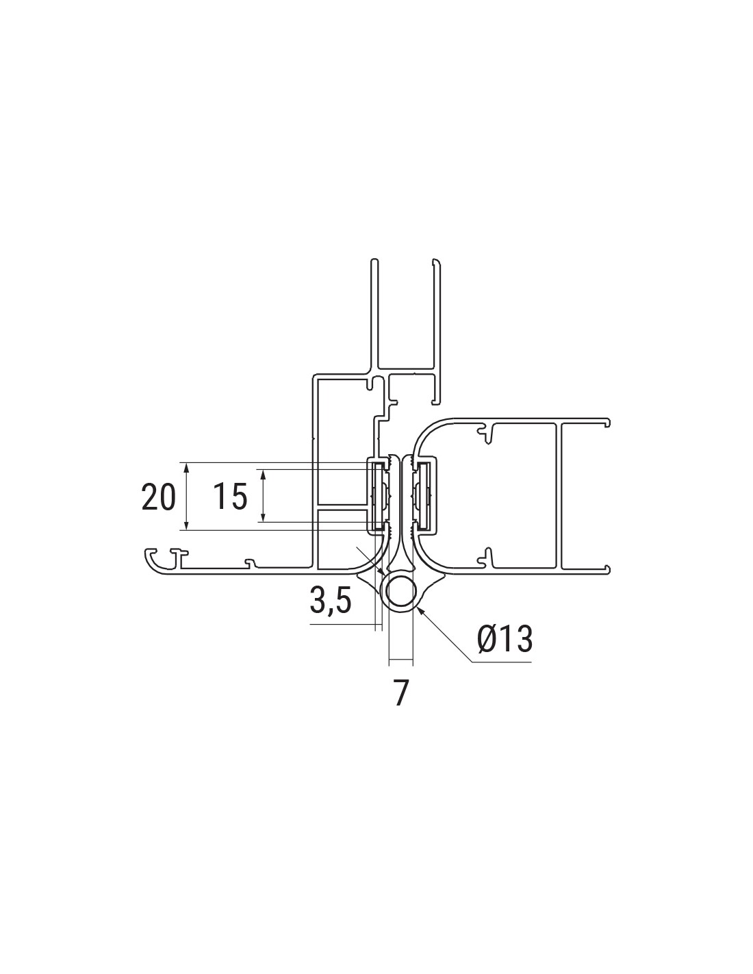 Charnière pour portes d'intérieur à profil arrondi en aluminium, avec contreplaques - Châssis avec chambre.
