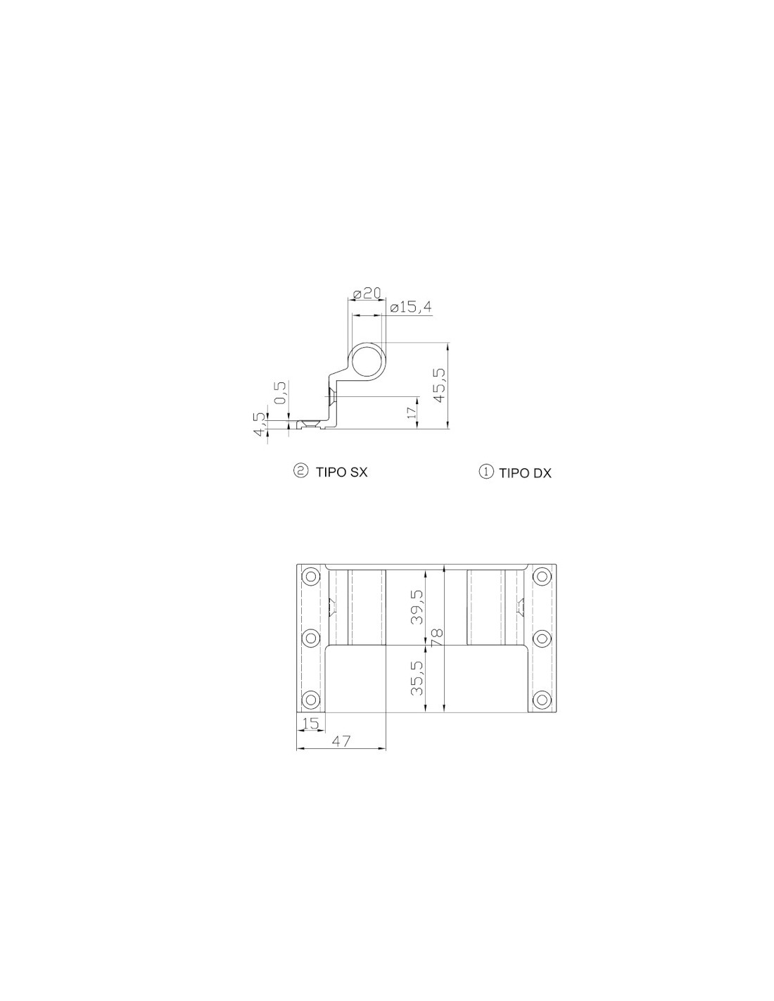 Noeud charnière invisible, gauche, en aluminium, pour gond réf. 2126 - Système H2S - A = 17 - C = 26