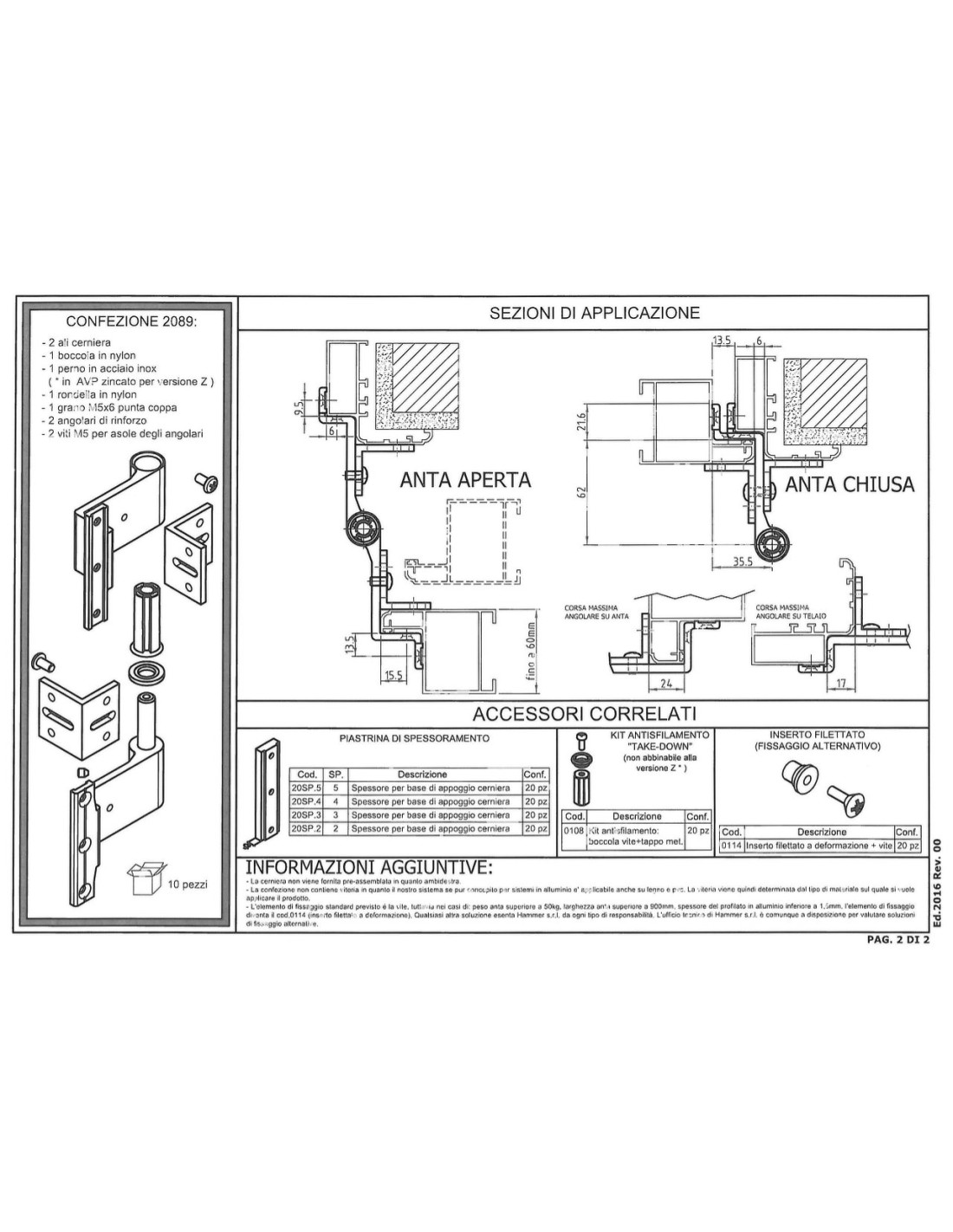 Charnière ambidextre avec pivot en acier inox - Système H2S - A = 80 mm - C = 13,5 mm (Jeu) - D = 62 mm