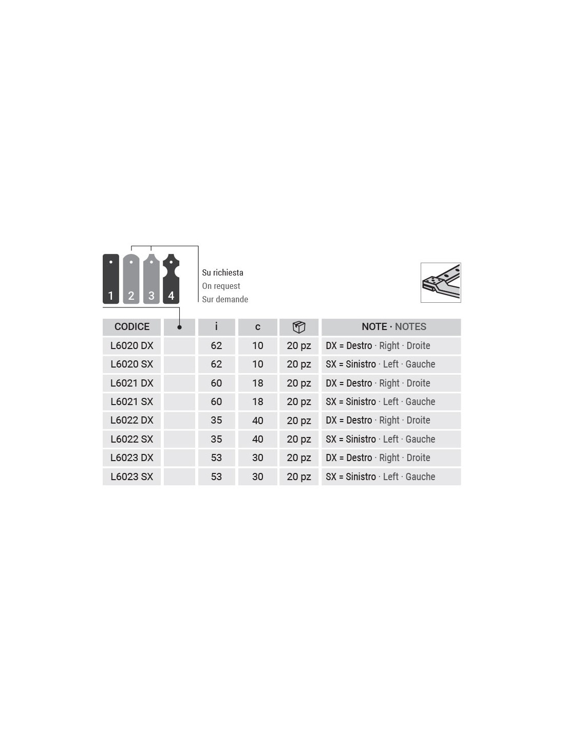 L6020SX - Équerre de volet gauche - Série 60 - I   62 mm