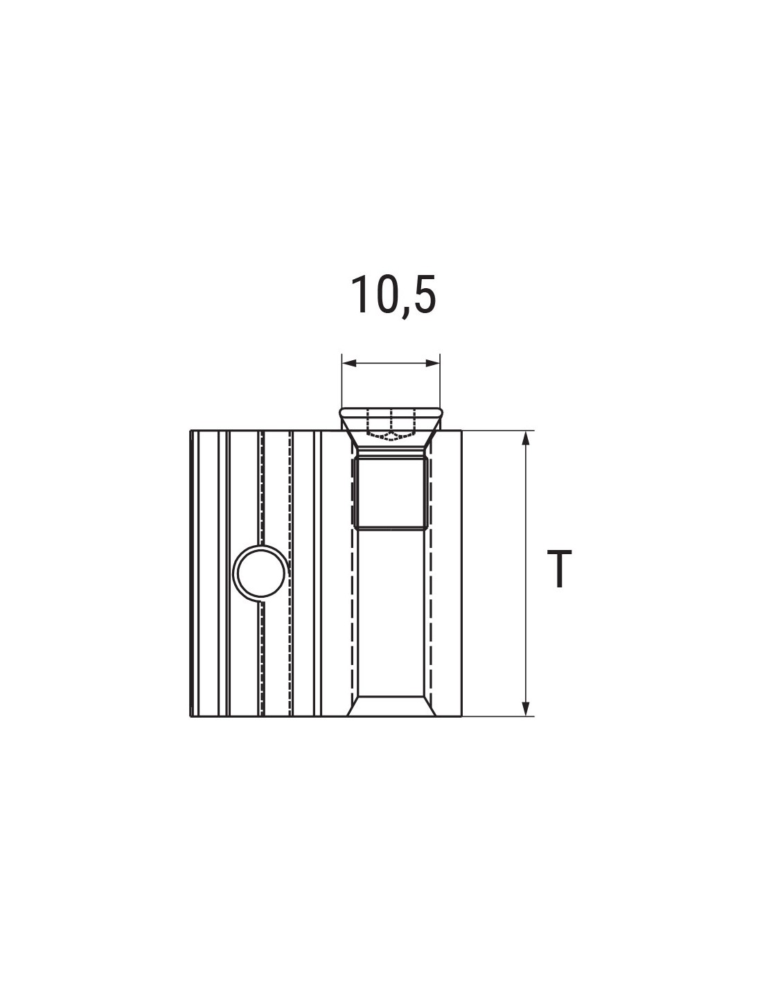 CAVALLOTTO AD INFILARE lg.141 mm IN ALLUMINIO ESTRUSO CON FORO M6