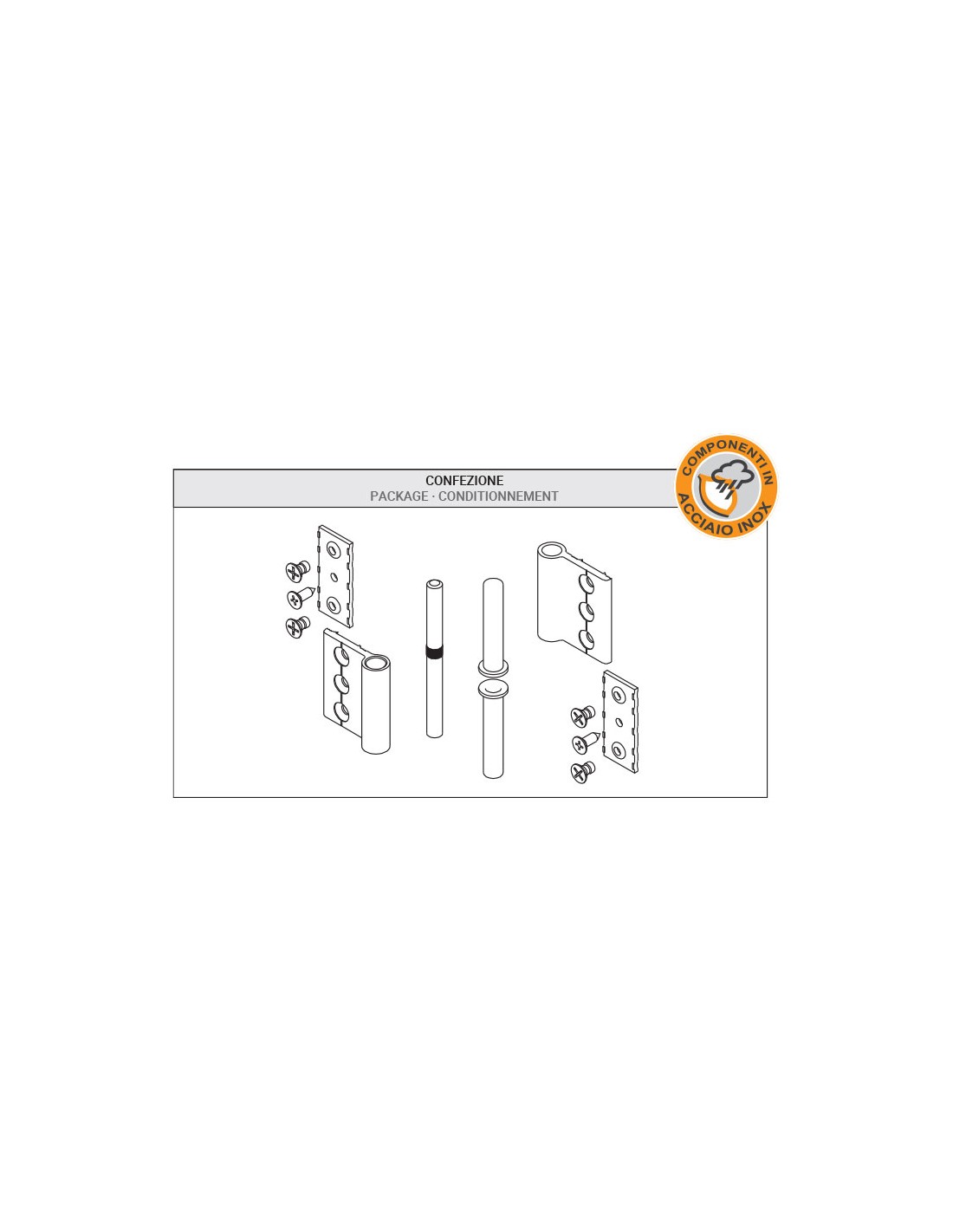 Cerniera a due ali in alluminio estruso con componenti inox - Complanare.