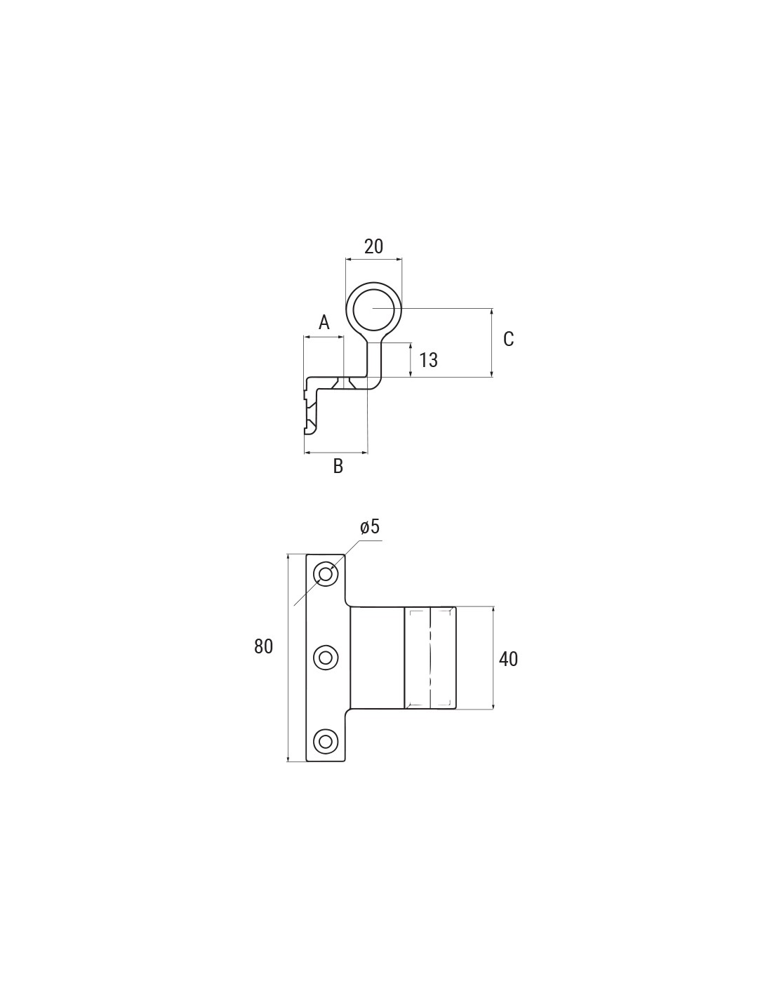 Bandella con fissaggio a scomparsa ambidestra in alluminio - Sistema H2S - A = 15 mm (4° foro) - Collo 26 mm
