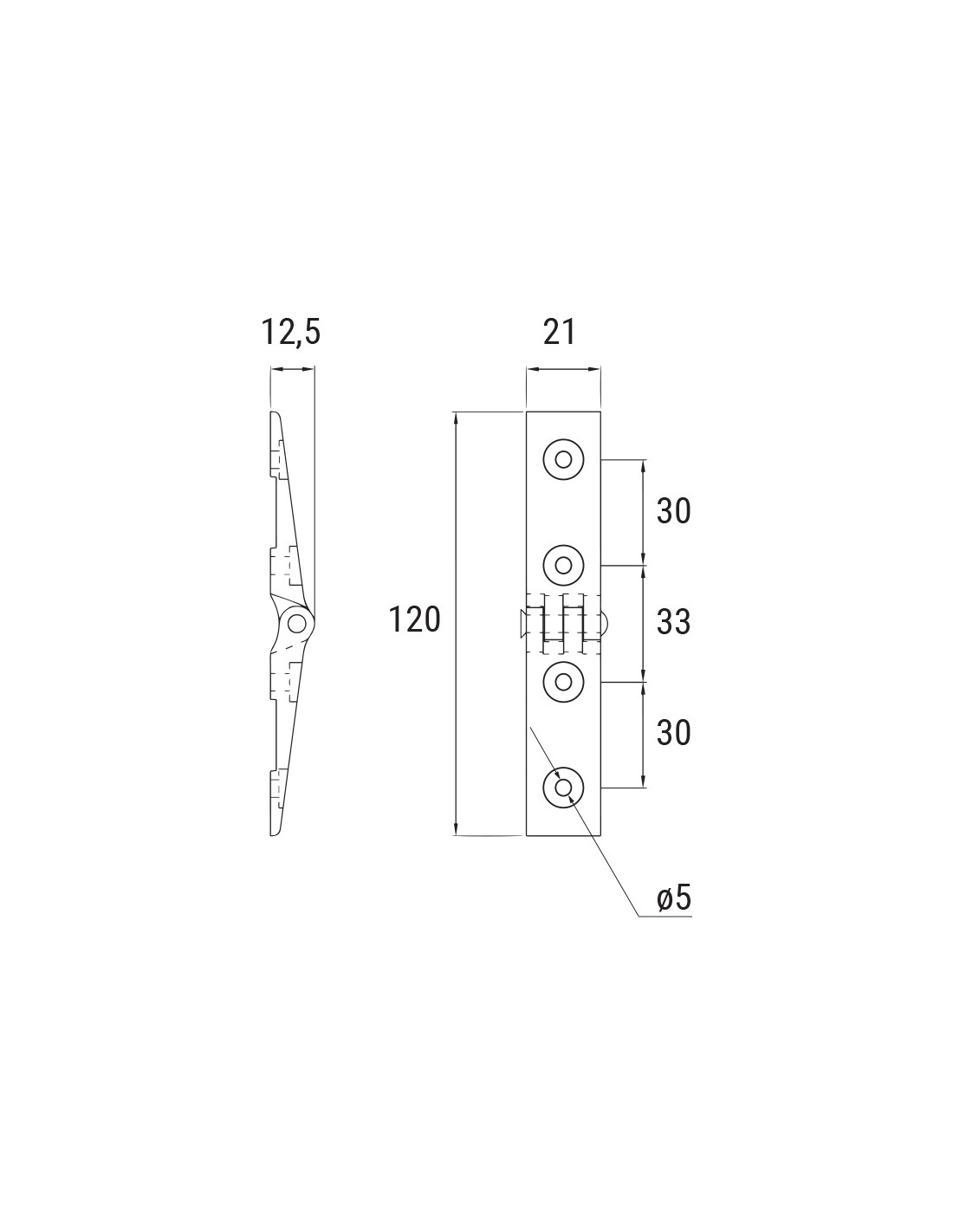 Cerniera per sportello alla toscana in alluminio e perno in acciaio inox - Complanare.