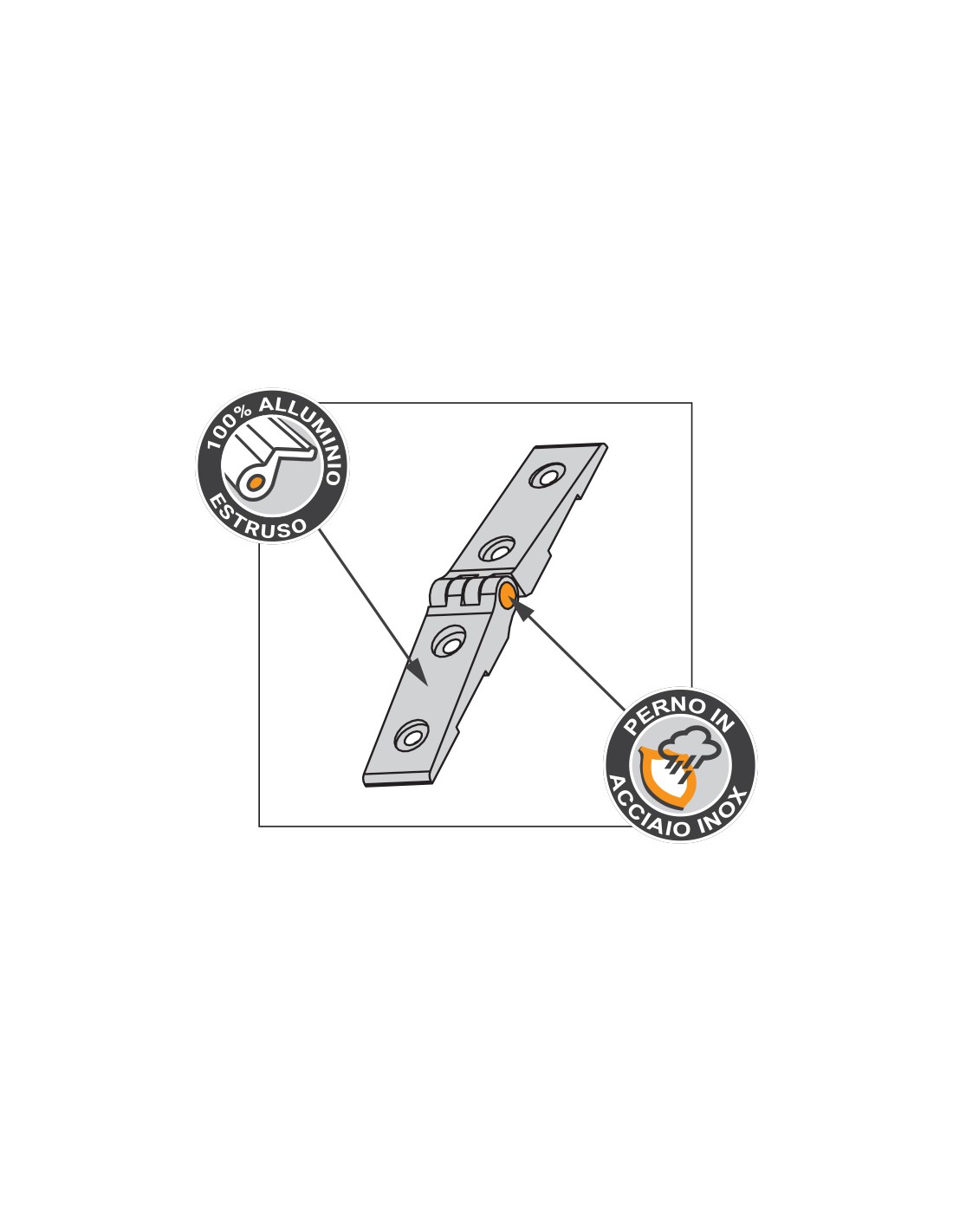 Cerniera per sportello alla toscana in alluminio e perno in acciaio inox - Complanare.