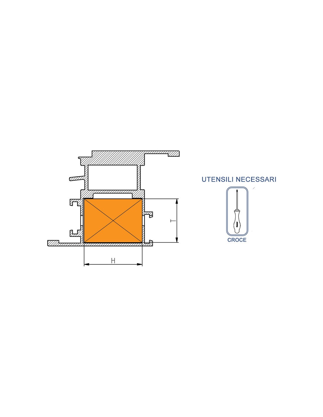 Squadretta ad angolo variabile in alluminio estruso per profili maggiorati T = 69 mm x H = 36 mm.