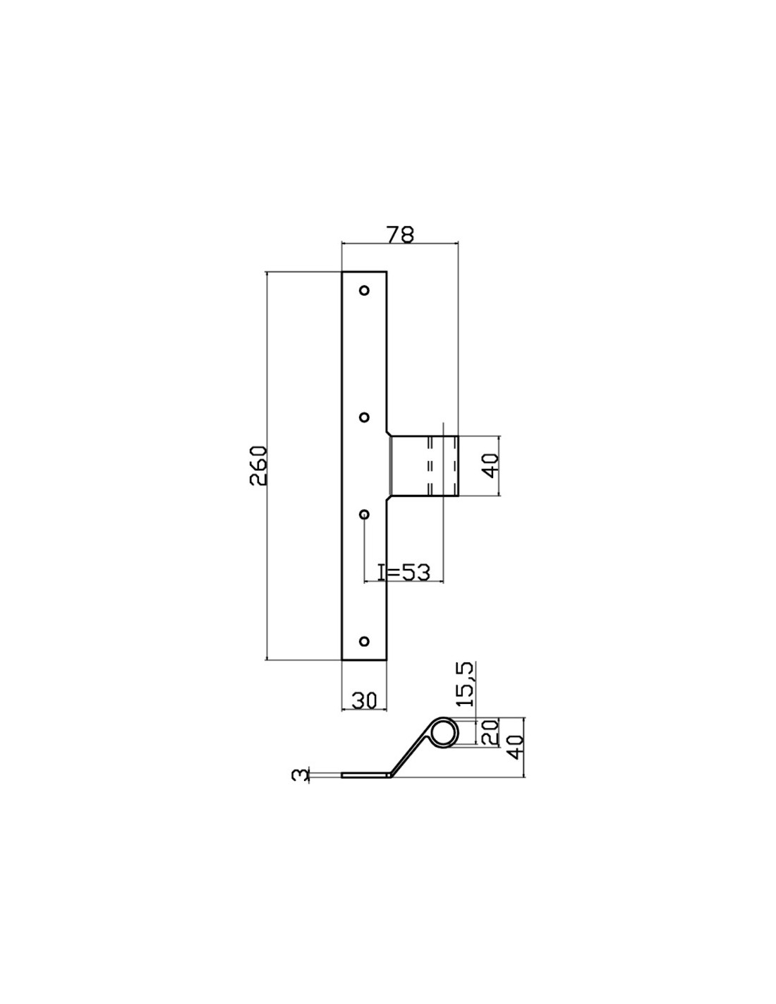 Bandella mezzo squadro - Serie 60 - I = 53 mm - Collo = 30 mm.