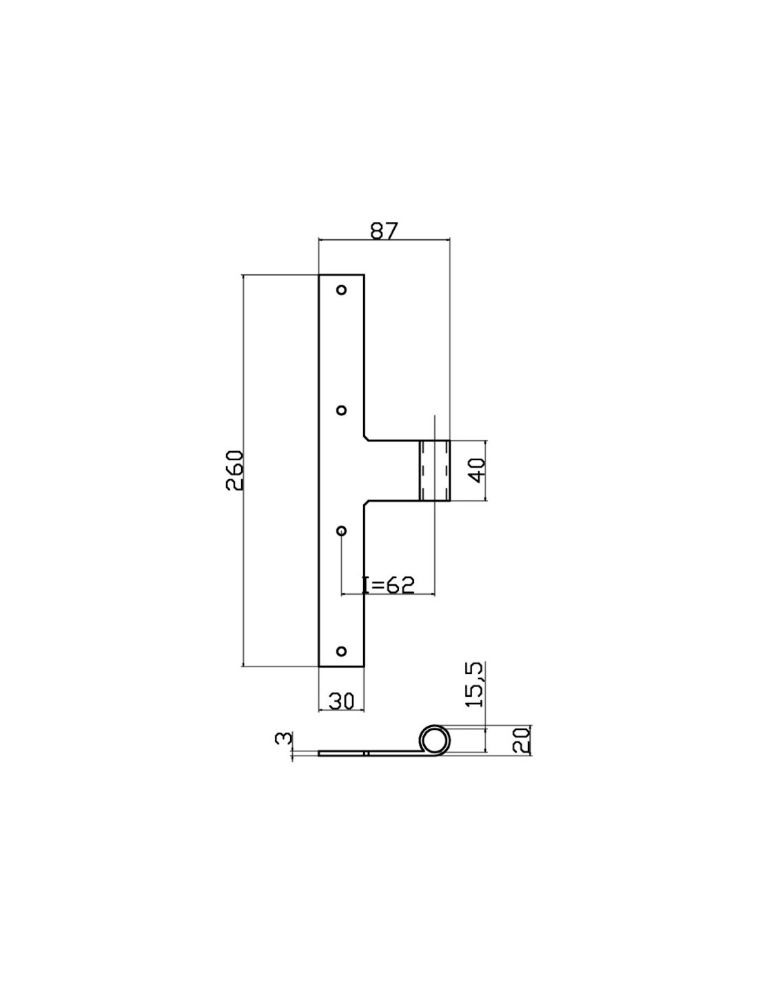 Bandella mezzo squadro - Serie 60 - I = 62 mm - Collo = 10 mm - Complanare.