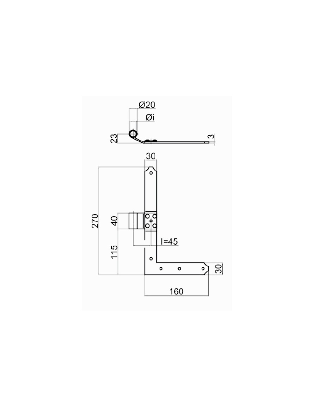 Bandella squadro destro - Serie 70 - I = 45 mm - Collo = 23 mm.