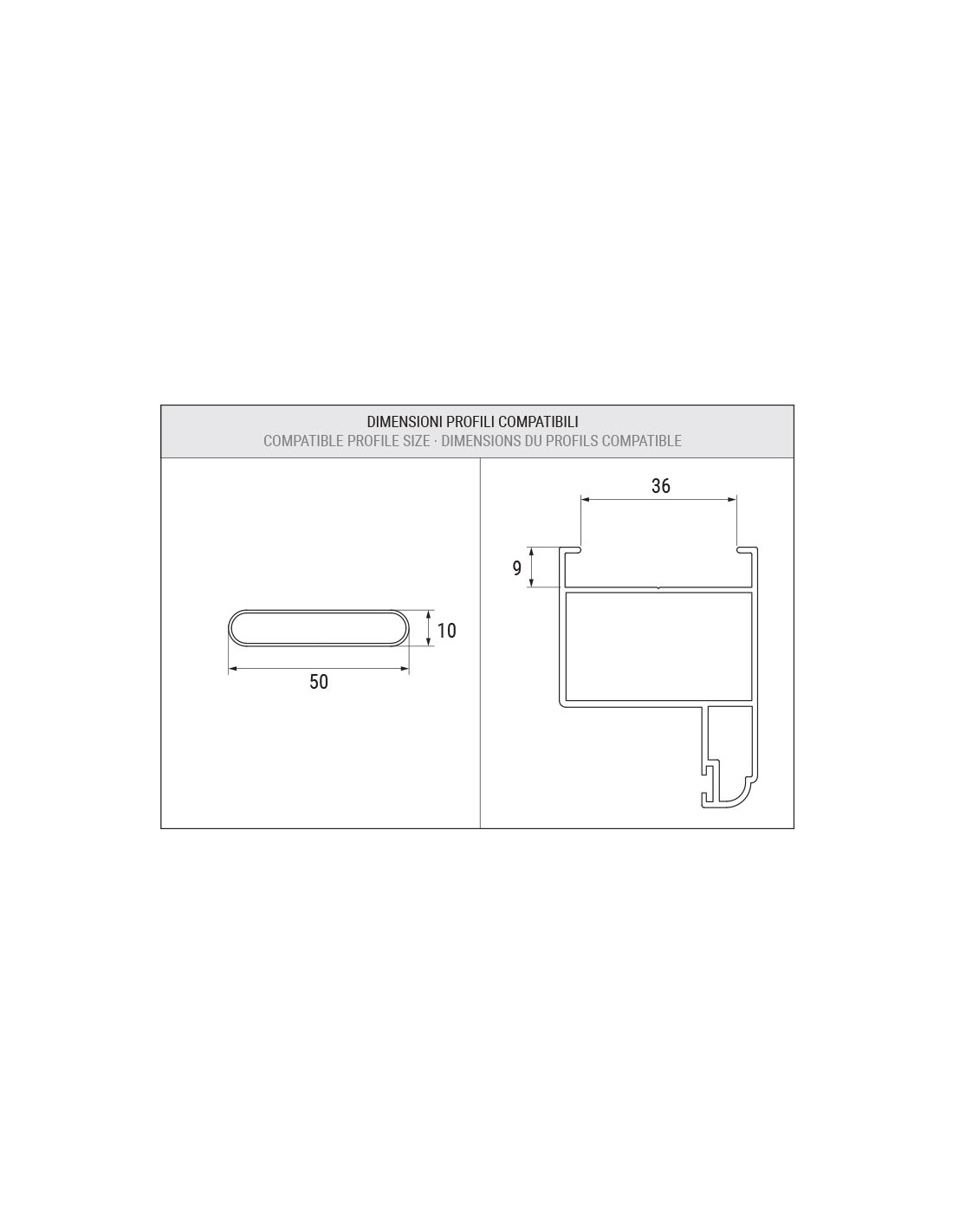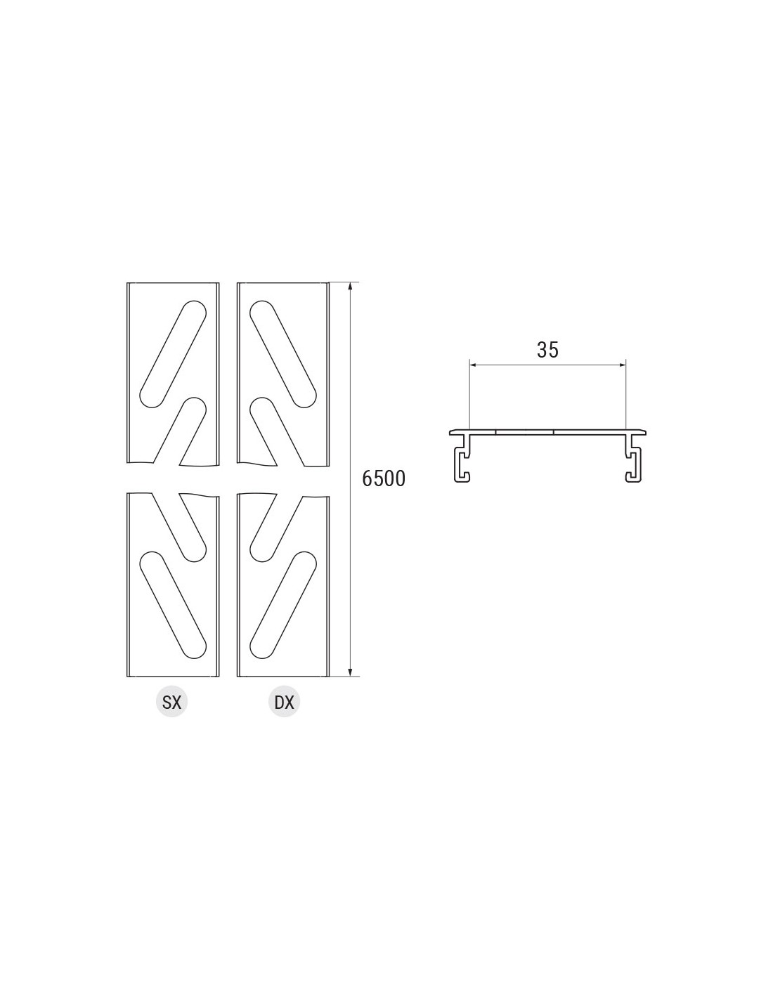 Coppia stecche per persiane in alluminio con ovaline fisse 50 x 10 mm - Cava = 36 mm - L = 6500 mm