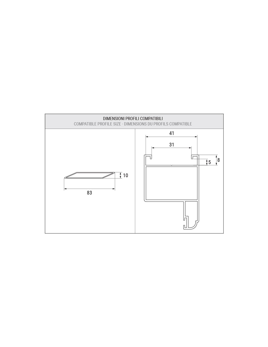 Coppia barre pretranciato per persiane in alluminio con lamelle fisse 83 x 10 mm - Cava = 31 mm - L = 6500 mm