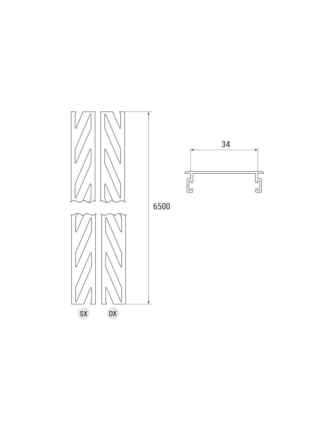 Coppia barre pretranciato per persiane in alluminio con lamelle fisse 83 x 10 mm - Cava = 35 mm - L = 6500 mm